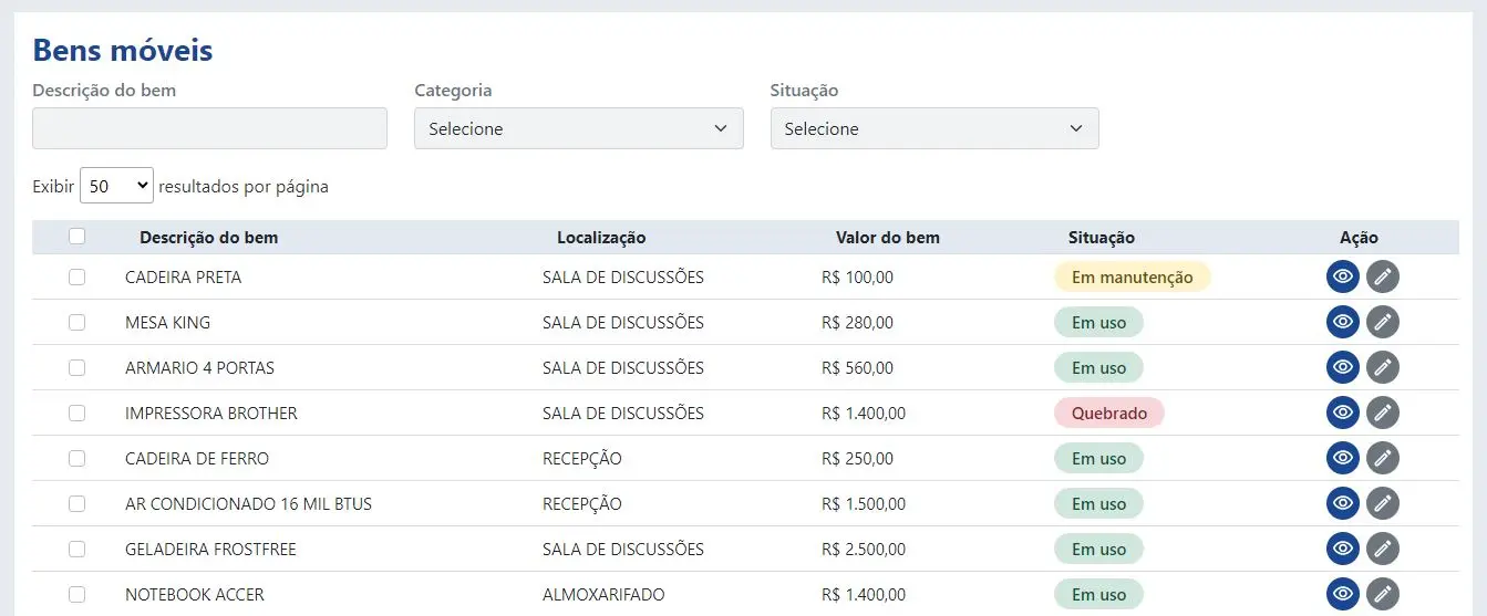 Realize uma melhor execução dos procedimentos de recebimento, transferência e desfazimento do controle de bens. Tenha um maior controle de todos os bens que pertencem a sua organização, cadastre bens por cômodos, gere relatórios específicos, tenha controle total sobre todos os bens da organização.