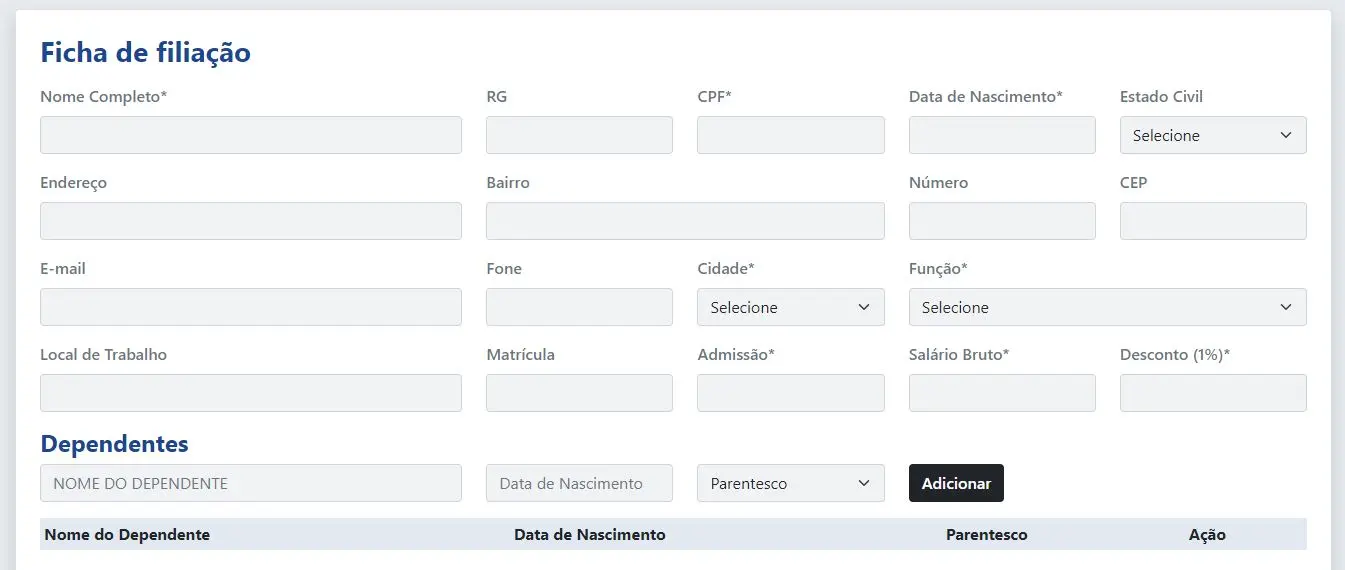 A versão online da Ficha de Filiação foi construída seguindo rigorosamente normas operacionais. A funcionalidade está dividida em dois blocos de uso, seguindo regras técnicas de construção de fichas.